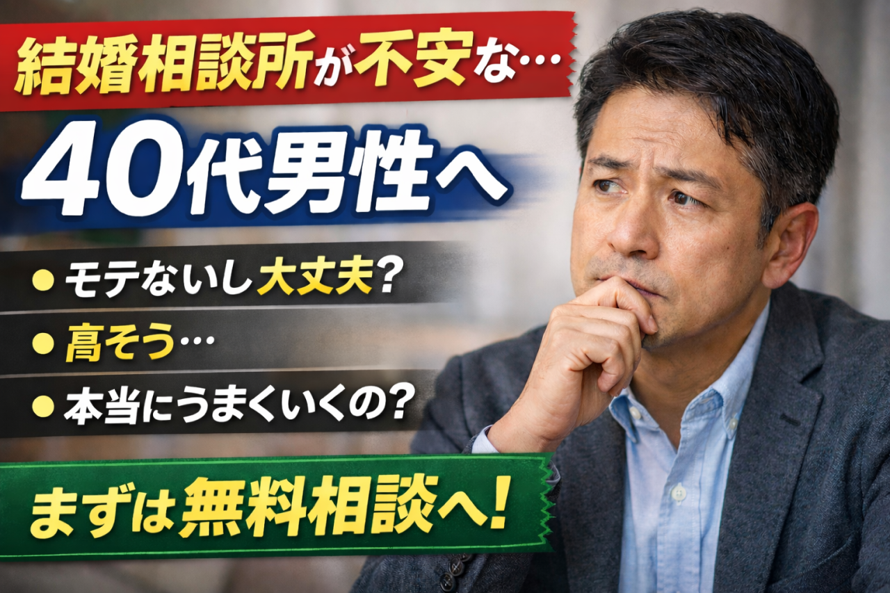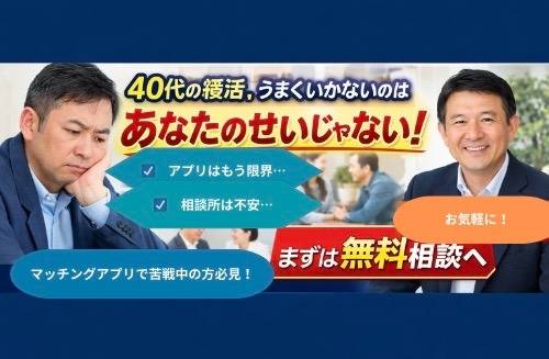 うまくいかない人との決定的な違いなぜ同じ40代でも、婚活の結果に差が出るのでしょうか?「同じ年代なのに、あの人はうまくいっている」 「自分と何が違うんだろう…」これは、婚活をしている40代男性が …